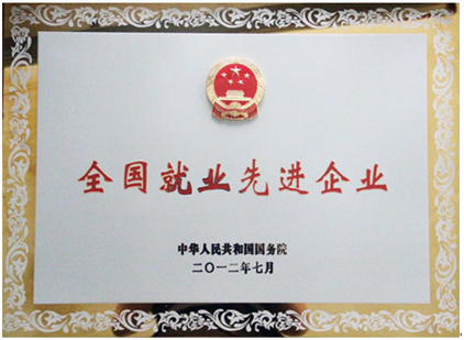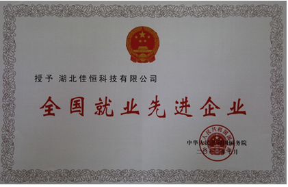 國務院授予湖北佳恒“全國就業先進企業”榮譽稱號稱號