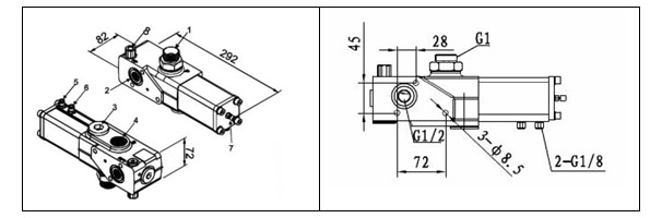 四個(gè)(上圖為3個(gè)φ8.5的孔),請(qǐng)?zhí)峁╅y的進(jìn)出油接頭的外徑(如上圖G1約
